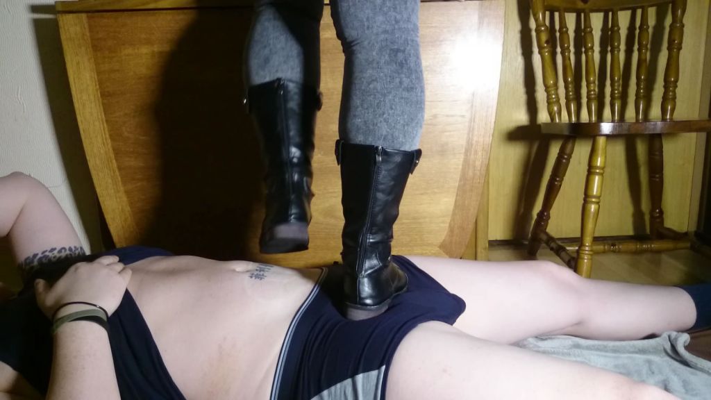 I'm not always in the gym weightlifting and pumping iron, i'm also very interested in art. I wanted to test out my new digital painting laptop that I will be using to create trampling pictures, art and illustrations for this site so I decided to paint a picture on it whilst trampling my slave. I wanted him to endure my 200lb body standing on him for the duration of the painting process, that will influence my mood and influence the way I paint and I was very interested in what the result may be. This was very enjoyable as at times my mind would drift away as I'm concentrating on the painting and forgetting that my giant 200lb physique is relentlessly crushing my slave beneath me. At other times as you will see I am fully aware that his delicate bits are under me and I concentrate my weight on them, also lots of one footed concentration of my weight on to his stomach. To begin with I stand on him in my brand new black sandals which are very strong and thick, very, very dangerous when worn by a woman of my weight. I stand, step, tread and march all over his stomach and crotch totally destroying everything in there! The shoes are real dick squishers but I also love to feel all the crushing action with my bare feet so I remove them and continue to trample him barefoot. Mmmmm there's nothing like the feeling of man being crushed under your bare soles (especially when you weigh as much as I do).